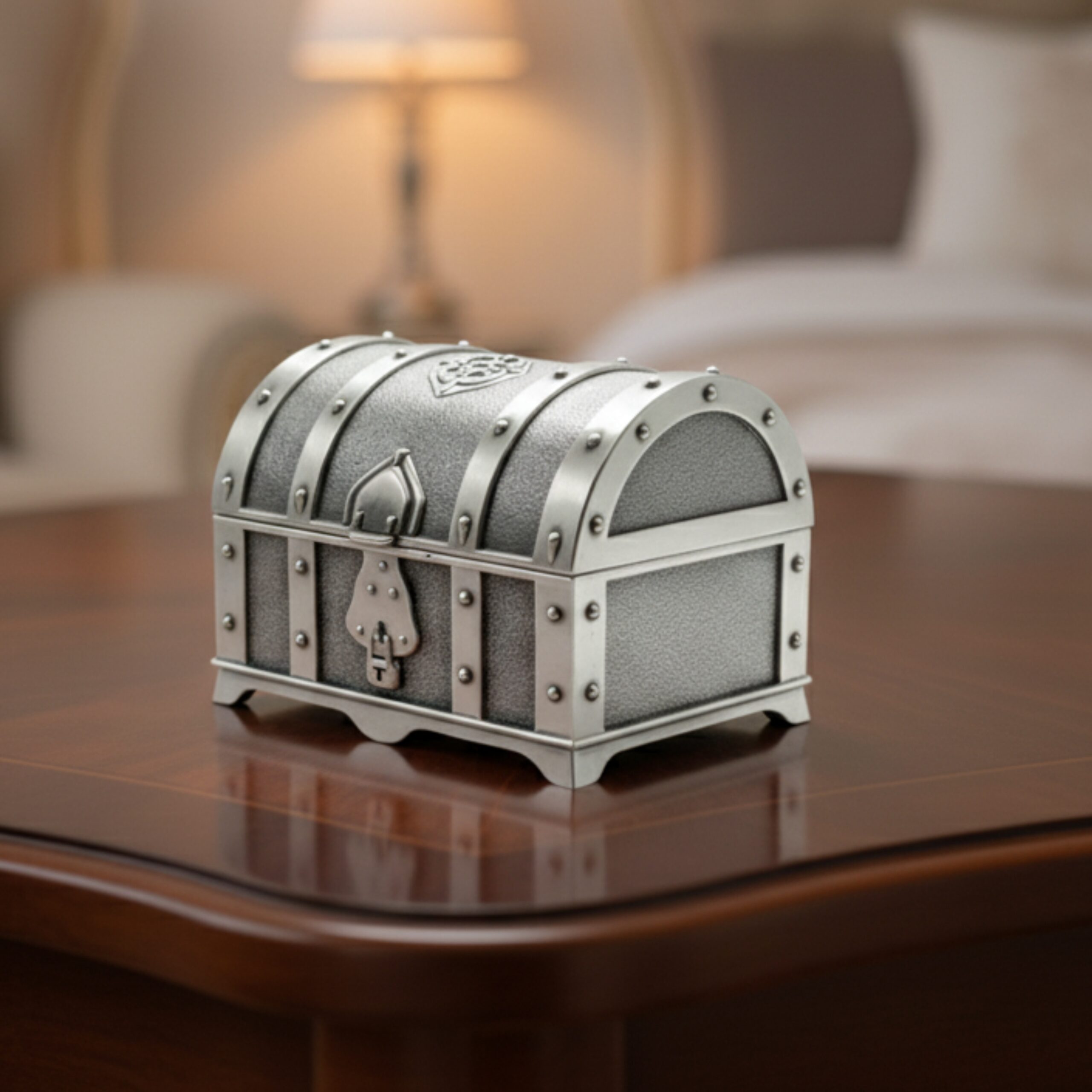 With its elegant metallic finish and detailed texture, this chest brings a touch of classic sophistication to any room. It’s the perfect size for holding jewelry, small keepsakes, or other special items. Place it on your dresser, desk, or nightstand for a stylish way to keep your valuables safe and sound.