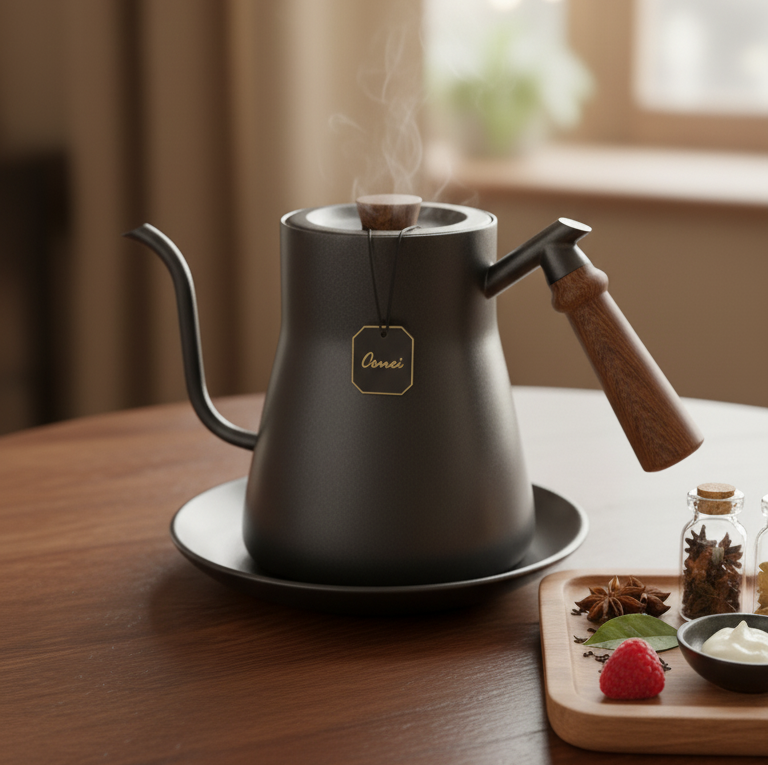 This lovely Modern Teapot features a sleek matte black body with a graceful gooseneck spout and a warm wooden handle. Its minimalist design is perfect for brewing and pouring, bringing a sense of calm and artful style to your tea time. A wonderful way to add a touch of modern simplicity to your kitchen.