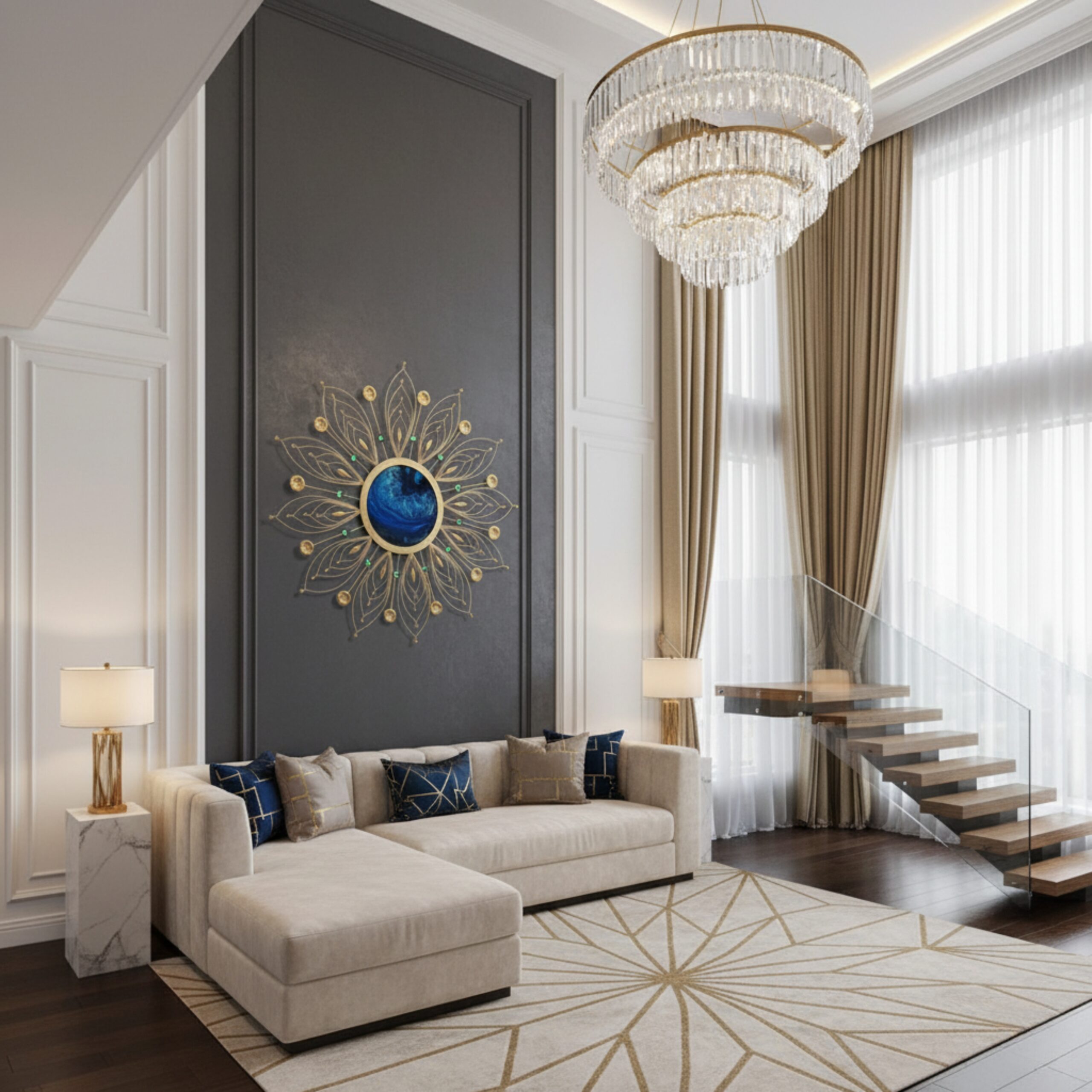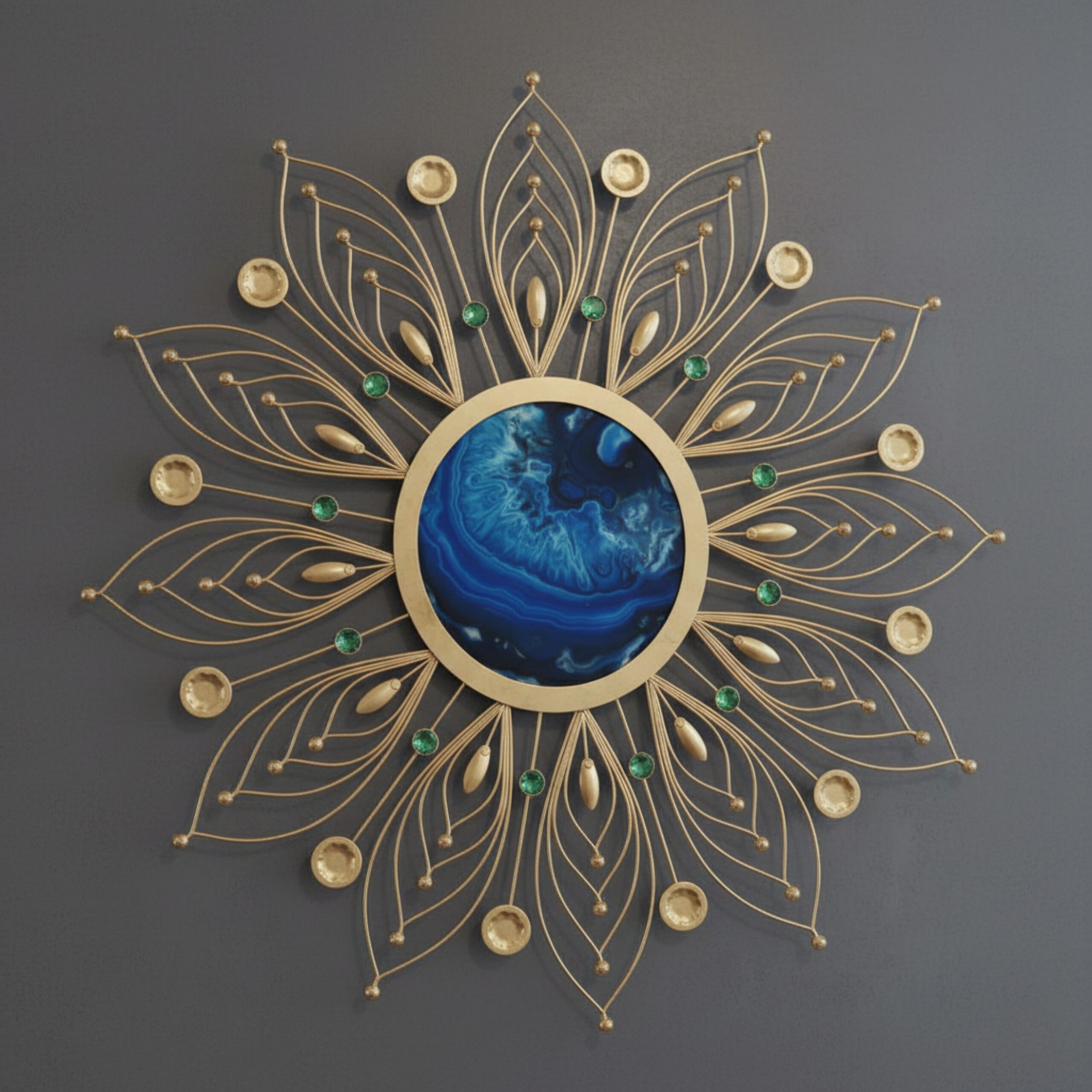 This intricate golden metal flower wall decor, brings artistic sophistication to any room. Perfect for enhancing a living room, entryway, or bedroom wall with its elegant design.